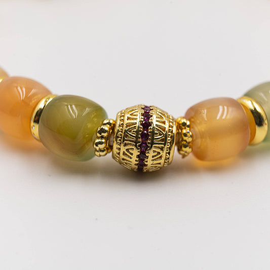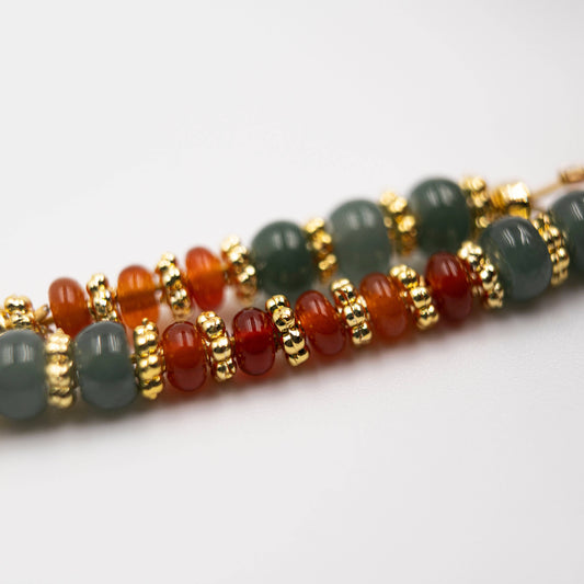 Pulsera de ágata con banda y escudo energético de ágata roja y verde