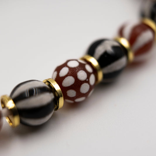 Pulsera de ágata roja y negra estampada con escudo energético