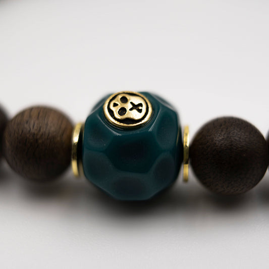 Pulsera de escudo energético con calavera de Eaglewood y cuentas de vidrio verde
