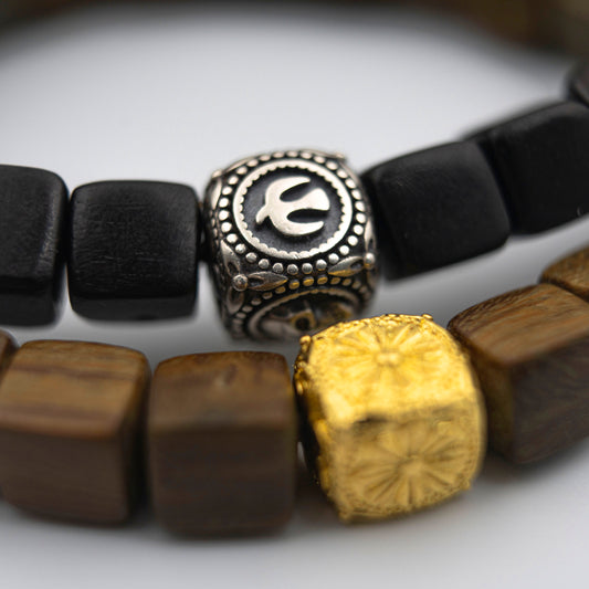 Juego de pulseras con escudo energético de sándalo Yin Yang