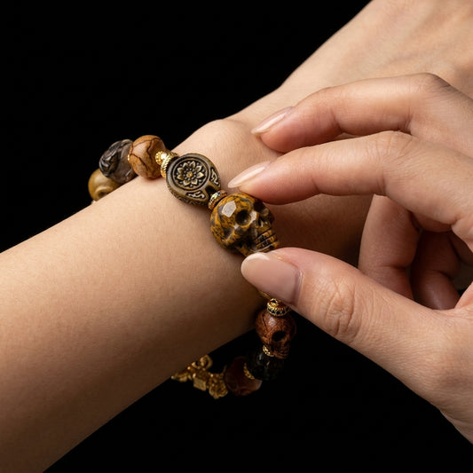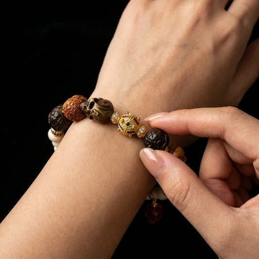 Pulsera de arquetipo de calavera de hueso tallado - Escudo energético de asta y colmillo