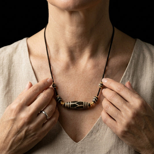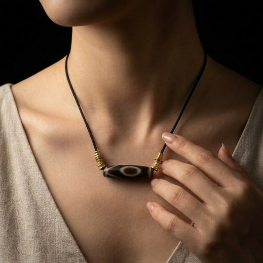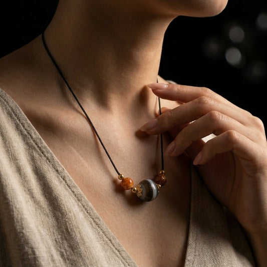 Collar con escudo energético de cuentas Dzi tibetanas de Ojo de la Sabiduría (1 ojo)