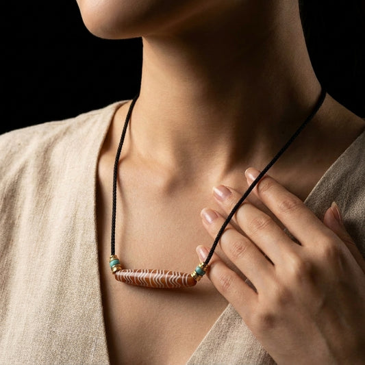 Collar con escudo energético turquesa y pluma Dzi tallada antigua