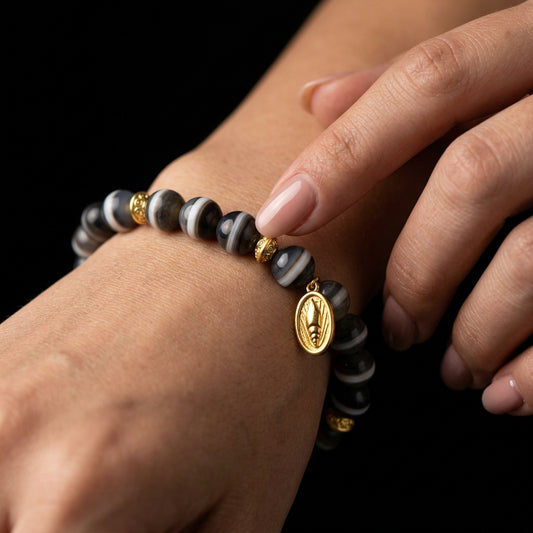 Pulsera de escudo energético con cuentas de ágata grabadas
