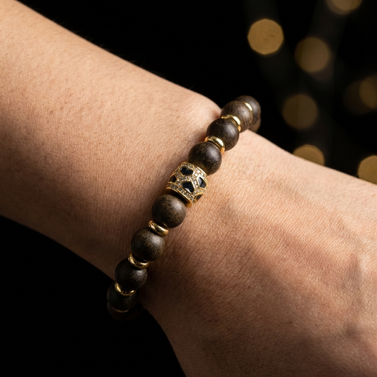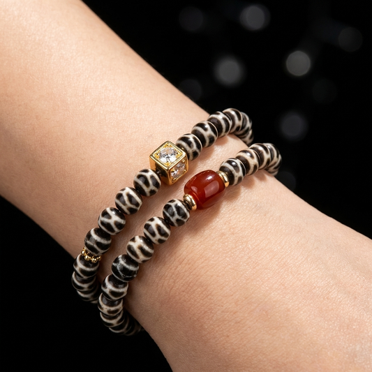Pulsera de protección energética con detalles de cuentas de asta natural y piedras preciosas
